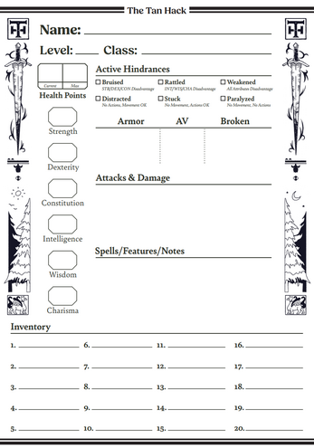 The Tan Hack is my ideal old-school adventure game compatible with the classics. Based on the framework of the legendary Black Hack, The Tan Hack has revamped: